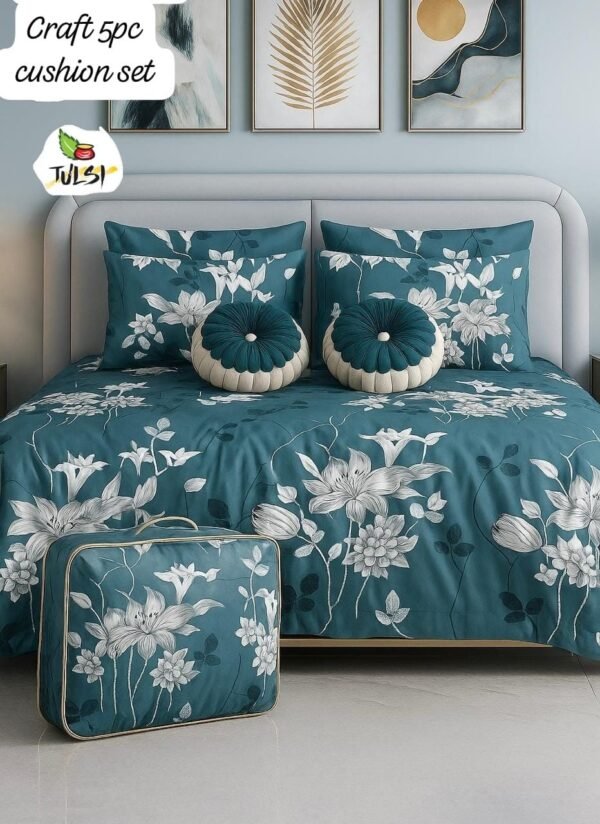 5pcs Handwork Cushion Set – Premium Glace Cotton Bedsheet