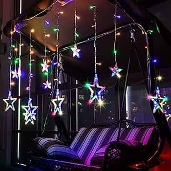 Multicolor LED Star Curtain String Light with 6+6 star design, approx 3 meters in length. Ideal for bedroom décor, Christmas, Diwali, weddings, and parties. Total weight 500g.