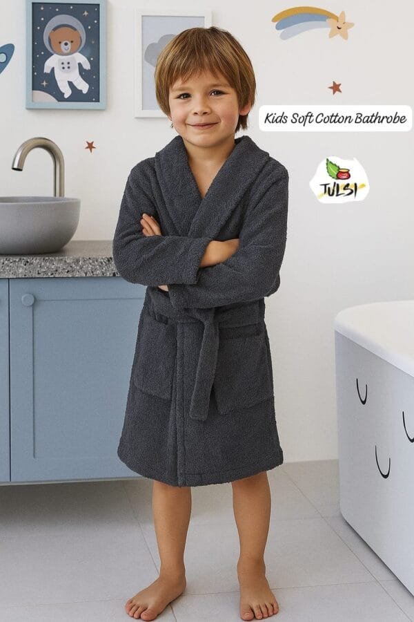 Discover the PURE COTTON SOAKING Soft Kids Premium Bathrobe – crafted for comfort, safety, and sustainability. Ultra-soft, highly absorbent, and chemical-free, this eco-friendly bathrobe is perfect for kids aged 5–10 years. Ideal for after bath, pool, or beach time, it ensures your child stays cozy, fresh, and happy.