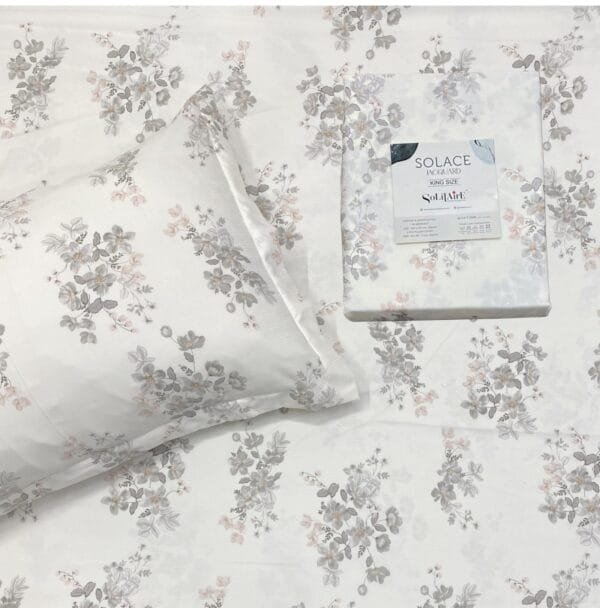 Bring home luxury with the Solitaire Solace Print Jacquard Bedsheet Collection. Made from premium glazed cotton with a 100% cotton feel, this jointless king-size bedsheet set ensures elegance, comfort, and long-lasting quality.